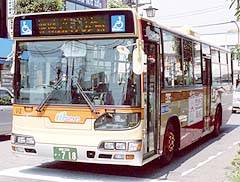 2004年式です。他メーカーと同様に前面車椅子ステッカーが両側に貼り付けられるようになった変化の他、側面の「神奈川中央通」表記が2002年式のように通常の丸ゴシック体となっている点が特徴的です。車体はおそらく最後の日野車体工業製ではないかと思います。今まで日野大型車としては伊勢原オリジナルの感がありましたが、2004年下期車としては舞岡営業所にハイブリッドノンステップバスの投入が行われており、今後の動向に注目したいところです。