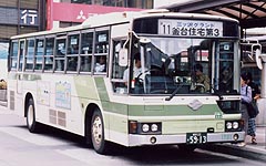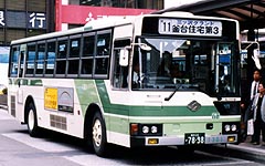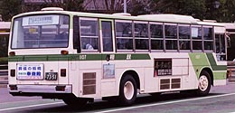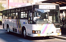 この年式からボディスタイルが三菱自動車工業と共通化されたため、新呉羽自動車工業製でも「エアロスターM」タイプに移行しました。横浜市中心部ではこのスタイルが今までなかったため、このボディの登場は大変驚かされました。なお、トミーテックから発売の「ザ・バスコレクション第4弾」で模型化された「1304」は当グループ内の車ではないかと思われます。横浜駅西口にて撮影