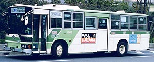 1994年上期車のグループです。ボディスタイルは1993年式と殆ど変わっていませんが、車体のメーカーは従来の新呉羽自動車工業から三菱自動車バス製造へと変わっています。なお、1994年下期車から側窓の支持方法が変わり、窓下の黒いラインがなくなるなど、外見的な変化が現れ、以降1995年式(1501〜)までほぼ同じ仕様で増備が続いています。二俣川駅北口にて撮影