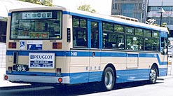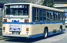 富士重7E車体を架装する車両です。屋上のクーラーユニットが純正車と同じものが搭載されているため、大きなポイントとなっています。なお、横浜市営のいすゞ車で富士重工業の車体を架装することは極めて珍しいことです。同じ富士重車体を持つ日産ディーゼル車とはフロントガラス下の黒い塗装がないことで前面から区別できます。