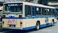 富士重7E車体を架装したワンステップ車です。このグループから車外スピーカーの形状が変わり、座席も背もたれの高いハイバックシートがとりやめとなりました。なお、富士重工業製の車両もこのグループで一段落しています。鶴見駅東口にて撮影