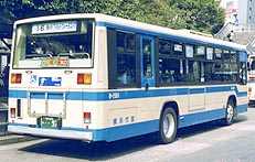 この1999年式から長さが最短尺(L尺、軸間4.8m)となり1997年式・1998年式のLV832で採用していた中尺(N尺、軸間5.3m)と比べると大分短くなりました。さらに、中扉がグライドスライドドアをやめて引き戸になりました。このグループは鶴見と港北に1台ずつ在籍します。同時期に、滝頭にCNGノンステップバス(KC-LV832L改)が5台入りましたが、その後港北に転じています。画像は滝頭時代のもので、100円バス運用の様子です。
