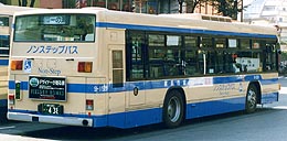 109系統専用に鶴見に配置された車両で、他のノンステップよりもワンサイズ長いN尺(軸間5.3m)が選択されています。ABSを装備しているため、リヤにロゴが見られます。109系統専用車の任を解かれてからは、本牧に移り、8系統などの混雑路線での運用が中心となっています。桜木町駅にて撮影